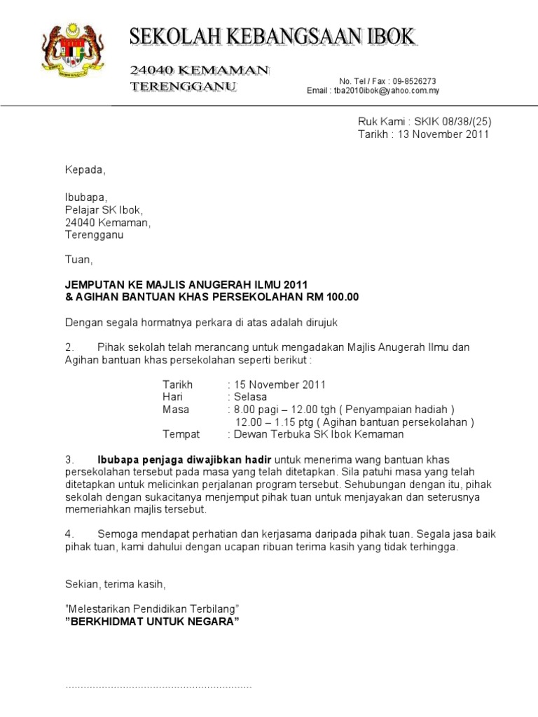Contoh Surat Jemputan Pnjaga Hari Anugerah